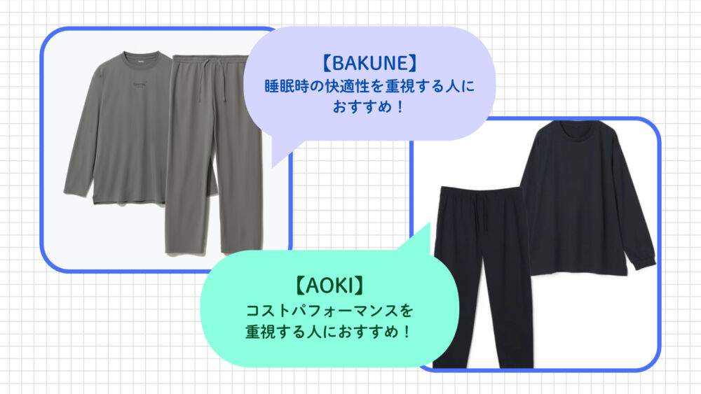 リカバリーウェアを初めて買うならどちらがおすすめかBAKUNEとAOKIを比較
