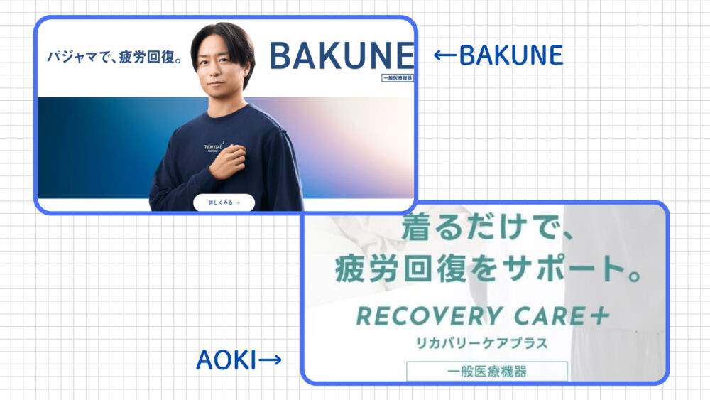 睡眠環境の質に悩んでいる方や、日々の疲れが取れないと感じている方の間で話題のリカバリーウェア。中でも、専門ブランドであるTENTIALの「BAKUNE」と、ビジネスウェア大手である「AOKI」のリカバリーウェアは、どちらも知名度が高く比較されやすい2大ブランドです。