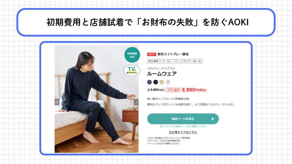 初期費用と店舗試着で「お財布の失敗」を防ぐAOKI