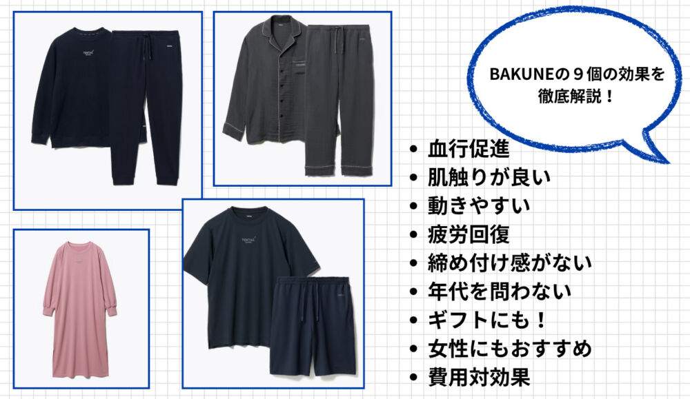 本章では、BAKUNEリカバリーウェアの効果を9個に分けて解説します。