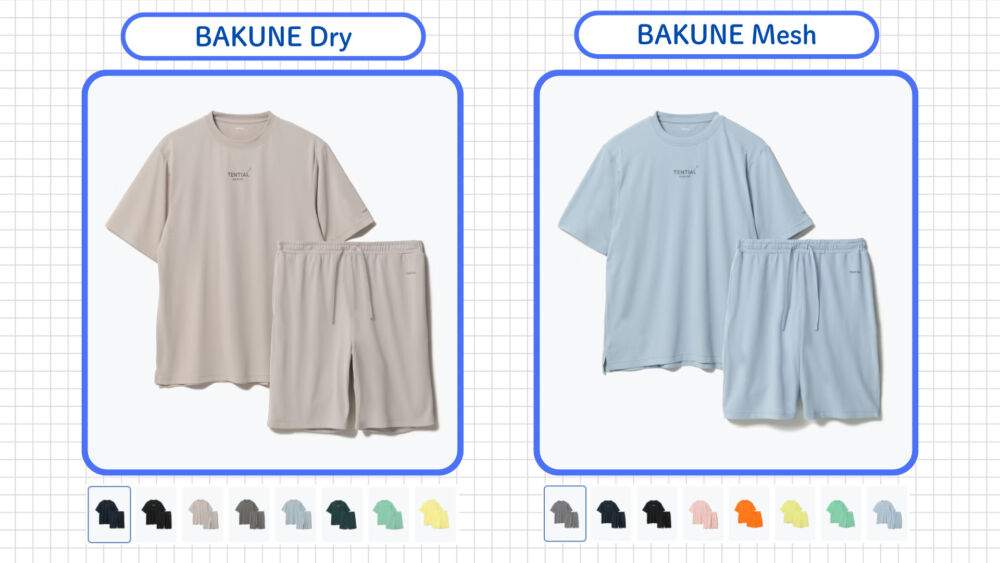 紹介したBAKUNEのパジャマ(pajamas)シリーズのほか、TENTIALは夏用(DRY)と冬用(WARM)として別シリーズを用意しています。