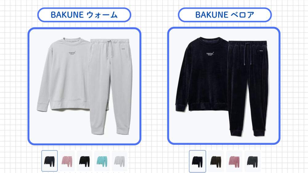 BAKUNEパジャマとスウェット型の違い