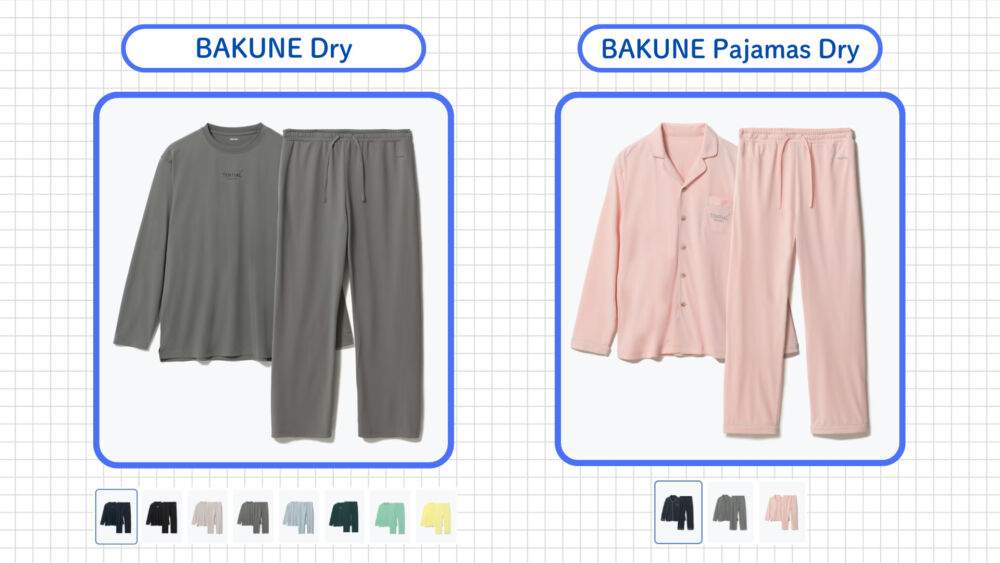 | 代表モデル | BAKUNE パジャマ スウェット BAKUNE パジャマ ガーゼ など |