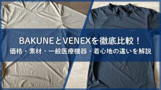 ベネクスも人気のリカバリーウェアブランドで、一般医療機器として展開しています。素材バリエーションの豊富さではBAKUNEが充実しており、Dry、Mesh、Gauze、Warmなど目的別に選べる点が特徴です。
