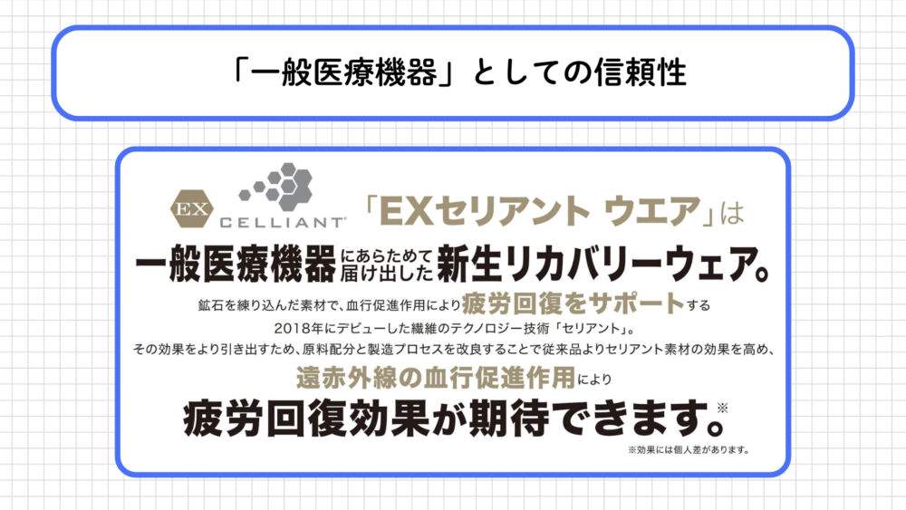 これが、EXセリアントが「着る疲労回復」と呼ばれる最大の理由です。