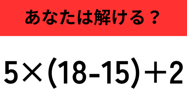 算数クイズ 【計算の順序に注意】「5×(18-15)+2」正しく計算できる? 2026年2月20日 flower https://do-gen.jp/entertainment/wp-content/uploads/2025/05/logo.png エンタメDO-GEN