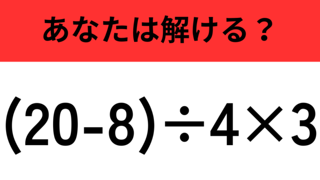 算数クイズ 【計算の順序に注意】「(20-8)÷4×3」正しく計算できる? 正答率60% 2026年4月9日 flower https://do-gen.jp/entertainment/wp-content/uploads/2025/05/logo.png エンタメDO-GEN