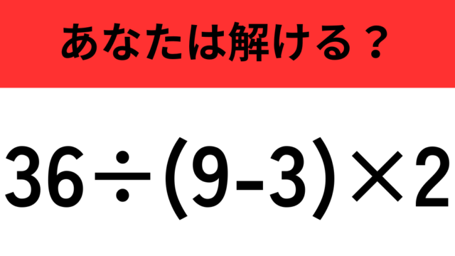 算数クイズ 【計算の順序に注意】「36÷(9-3)×2」正しく計算できる? ひっかけ注意! 2026年4月10日 flower https://do-gen.jp/entertainment/wp-content/uploads/2025/05/logo.png エンタメDO-GEN