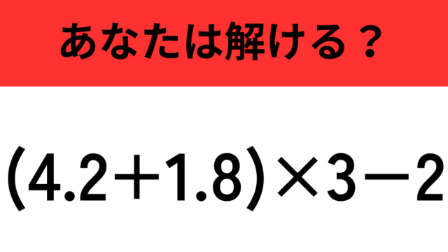 算数クイズ 【計算の順序に注意】「(4.2+1.8)×3−2」正しく計算できる? 2025年12月5日 flower https://do-gen.jp/entertainment/wp-content/uploads/2025/05/logo.png エンタメDO-GEN