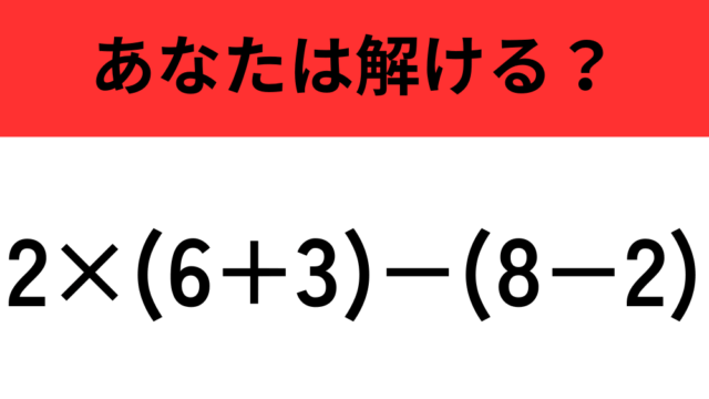 算数クイズ 【計算の順序に注意】「2×(6+3)−(8−2)」正しく計算できる? 2025年11月19日 flower https://do-gen.jp/entertainment/wp-content/uploads/2025/05/logo.png エンタメDO-GEN