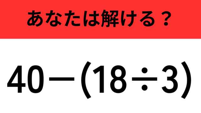 算数クイズ 【計算の順序に注意】「40−(18÷3)」正しく計算できる? 2025年11月20日 flower https://do-gen.jp/entertainment/wp-content/uploads/2025/05/logo.png エンタメDO-GEN
