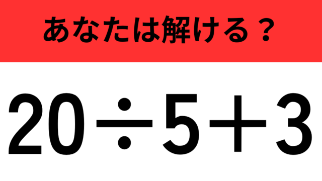 算数クイズ 【計算の順序に注意】「20÷5+3」正しく計算できる? 2025年12月31日 flower https://do-gen.jp/entertainment/wp-content/uploads/2025/05/logo.png エンタメDO-GEN