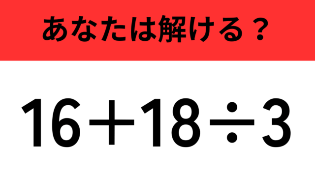 算数クイズ 【計算の順序に注意】「16+18÷3」正しく計算できる? 2025年11月18日 flower https://do-gen.jp/entertainment/wp-content/uploads/2025/05/logo.png エンタメDO-GEN
