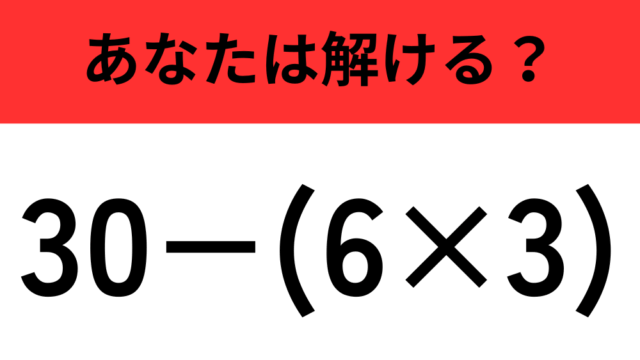 算数クイズ 【計算の順序に注意】「30−(6×3)」正しく計算できる? 2025年11月18日 flower https://do-gen.jp/entertainment/wp-content/uploads/2025/05/logo.png エンタメDO-GEN