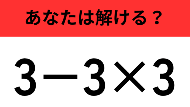 算数クイズ 【計算の順序に注意】「3−3×3」正しく計算できる? 2025年11月17日 flower https://do-gen.jp/entertainment/wp-content/uploads/2025/05/logo.png エンタメDO-GEN