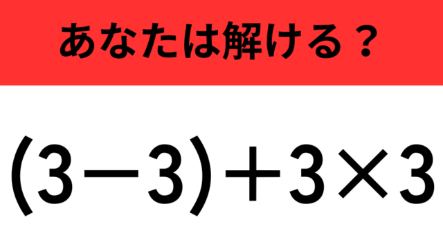算数クイズ 【計算の順序に注意】「(3−3)+3×3」正しく計算できる? 2025年11月17日 flower https://do-gen.jp/entertainment/wp-content/uploads/2025/05/logo.png エンタメDO-GEN