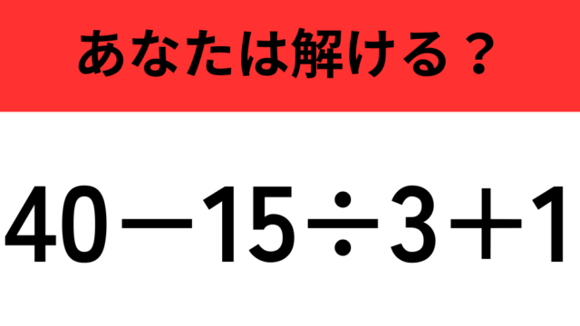 算数クイズ 【計算の順序に注意】「40−15÷3+1」正しく計算できる? 2025年12月22日 flower https://do-gen.jp/entertainment/wp-content/uploads/2025/05/logo.png エンタメDO-GEN