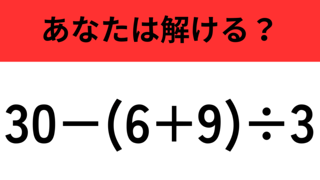算数クイズ 【計算の順序に注意】「30−(6+9)÷3」正しく計算できる? 2025年11月10日 flower https://do-gen.jp/entertainment/wp-content/uploads/2025/05/logo.png エンタメDO-GEN