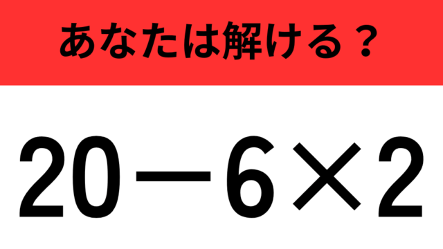 算数クイズ 【計算の順序に注意】「20−6×2」正しく計算できる? 2025年11月11日 flower https://do-gen.jp/entertainment/wp-content/uploads/2025/05/logo.png エンタメDO-GEN