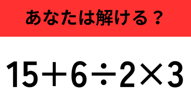 算数クイズ 【計算の順序に注意】「15+6÷2×3」正しく計算できる? 2025年12月18日 flower https://do-gen.jp/entertainment/wp-content/uploads/2025/05/logo.png エンタメDO-GEN