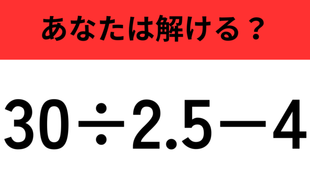 算数クイズ 【計算の順序に注意】「30÷2.5−4」正しく計算できる? 2025年12月20日 flower https://do-gen.jp/entertainment/wp-content/uploads/2025/05/logo.png エンタメDO-GEN