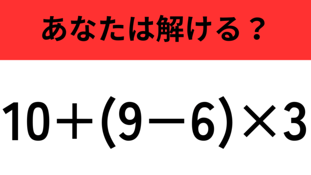 算数クイズ 【計算の順序に注意】「10+(9−6)×3」正しく計算できる? 2025年11月8日 flower https://do-gen.jp/entertainment/wp-content/uploads/2025/05/logo.png エンタメDO-GEN