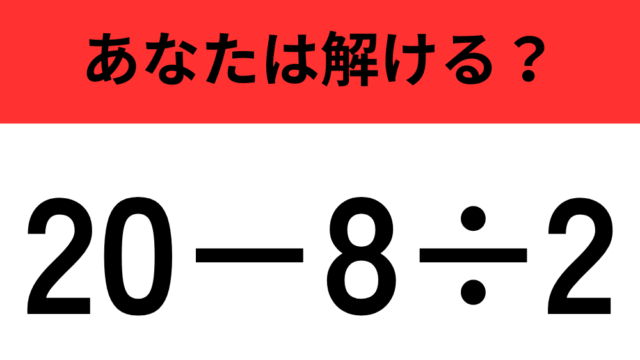 算数クイズ 【計算の順序に注意】「20−8÷2」正しく計算できる? 2025年11月9日 flower https://do-gen.jp/entertainment/wp-content/uploads/2025/05/logo.png エンタメDO-GEN