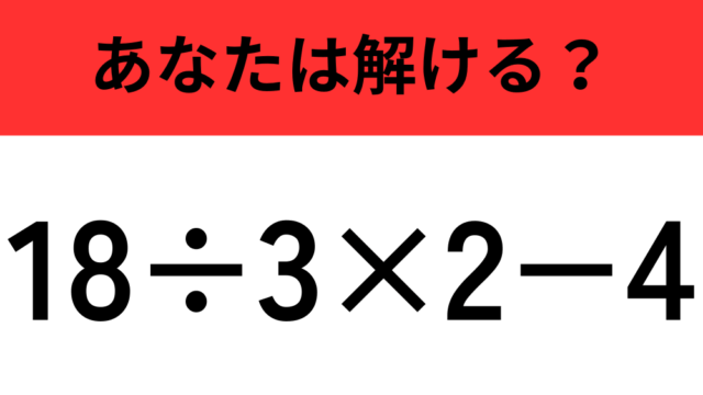 算数クイズ 【計算の順序に注意】「18÷3×2−4」正しく計算できる? 2025年11月8日 flower https://do-gen.jp/entertainment/wp-content/uploads/2025/05/logo.png エンタメDO-GEN
