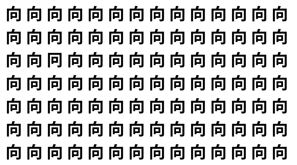 たくさんの「向」の中に、よく似た別の漢字が1文字だけ隠れています。