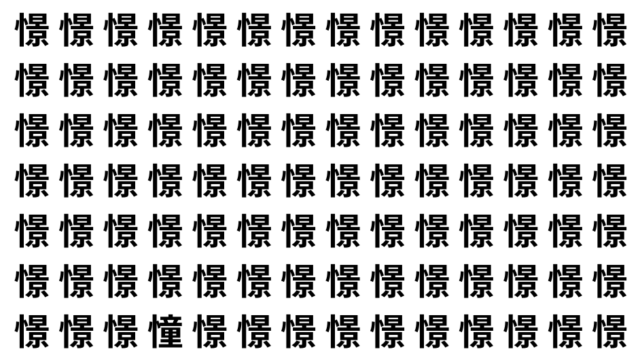 並んだ漢字の中に、ひとつだけ異なる文字が紛れています。集中して探し出し、気分をリフレッシュしましょう!