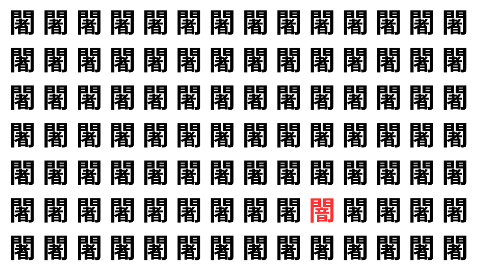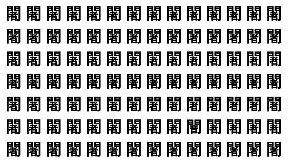 たくさんの「闍」の中に、よく似た別の漢字が1文字だけ隠れています。