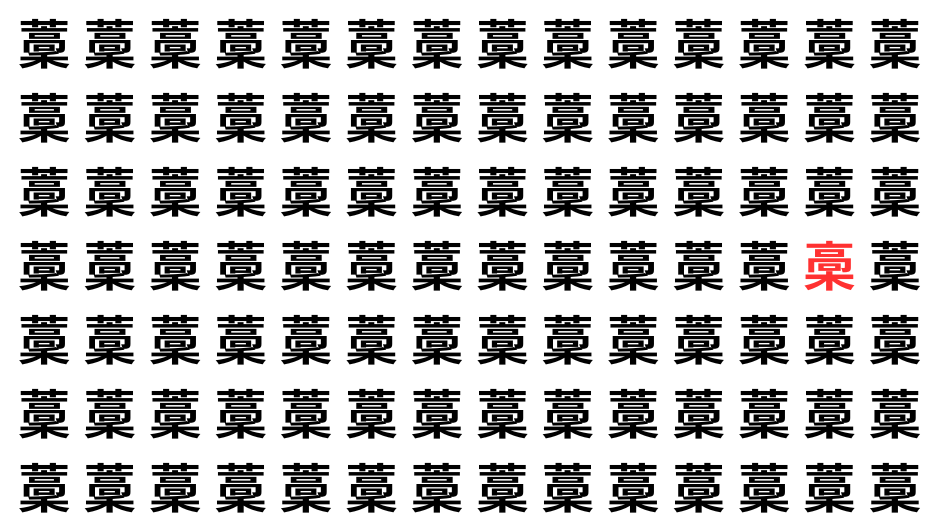 たくさんの「藳」の中に、よく似た別の漢字が1文字だけ隠れています。