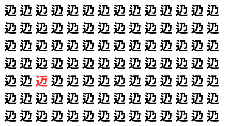 たくさんの「」の中に、よく似た別の漢字が1文字だけ隠れています。
