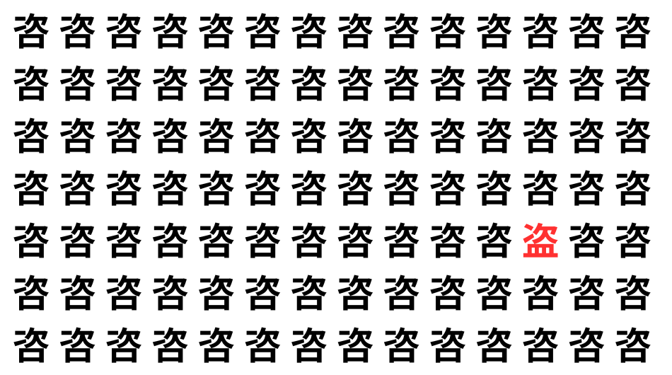 たくさんの「咨」の中に、よく似た別の漢字が1文字だけ隠れています。