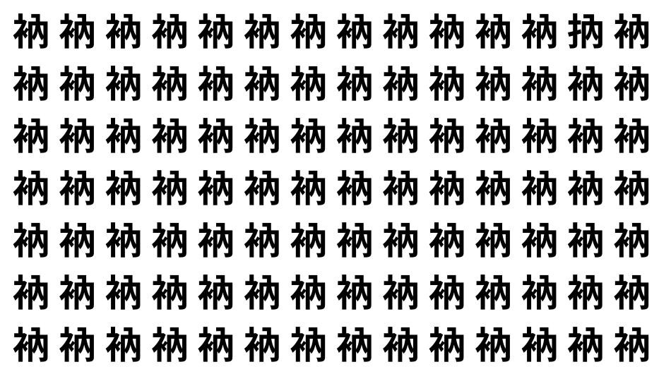 たくさんの「衲」の中に、よく似た別の漢字が1文字だけ隠れています。