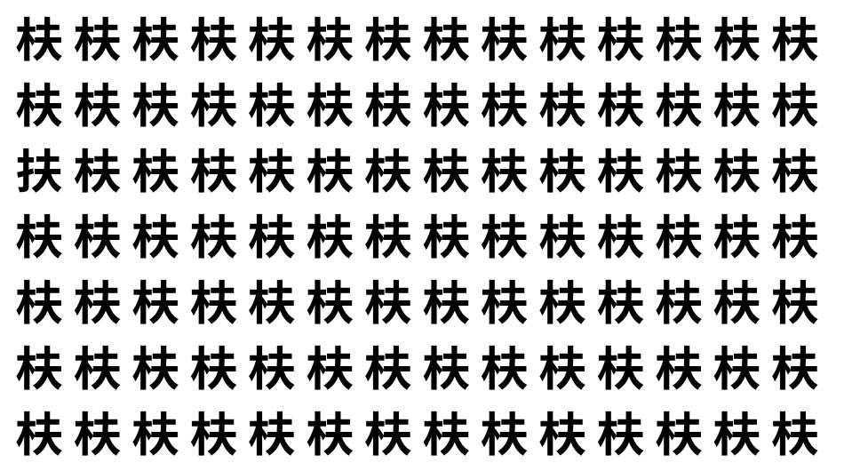 たくさんの「枎」の中に、よく似た別の漢字が1文字だけ隠れています。