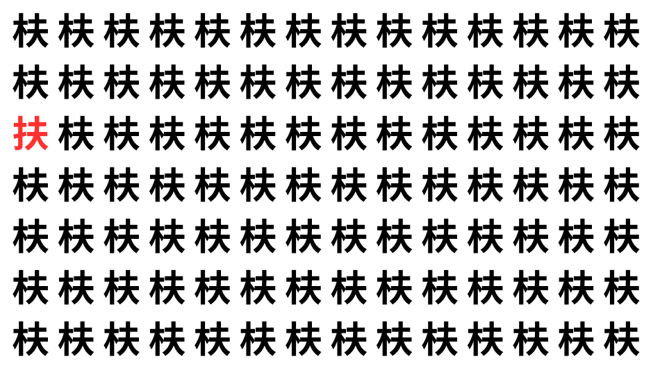 並んだ漢字の中に、ひとつだけ異なる文字が紛れています。集中して探し出し、気分をリフレッシュしましょう!