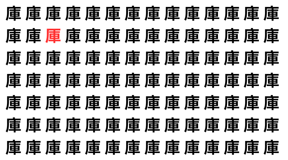 たくさんの「」の中に、よく似た別の漢字が1文字だけ隠れています。