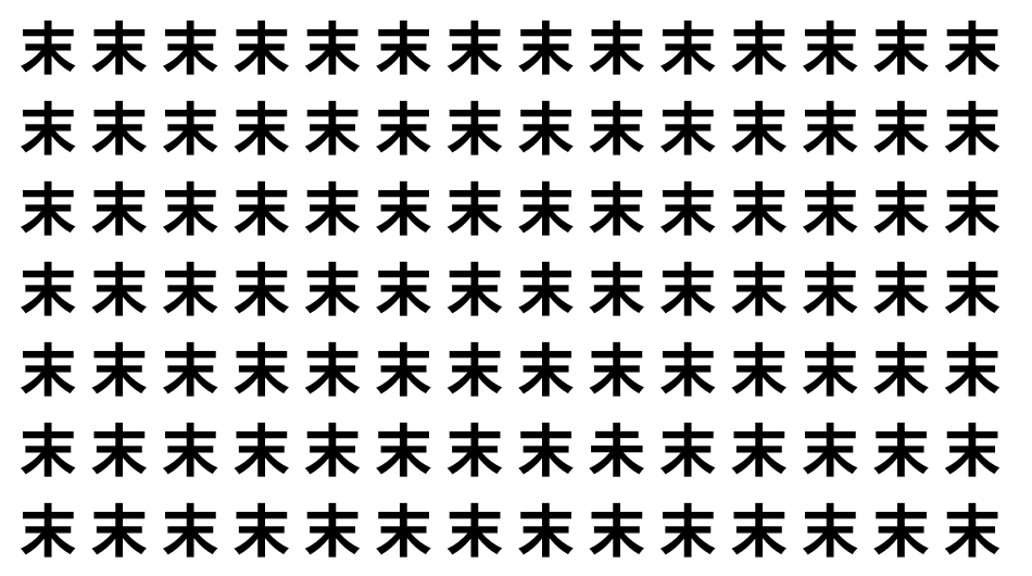 たくさんの「末」の中に、よく似た別の漢字が1文字だけ隠れています。