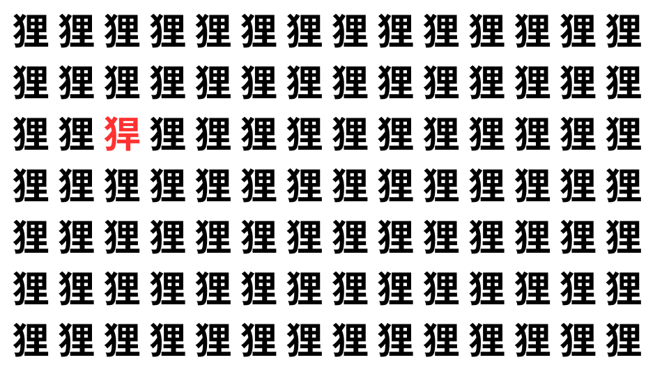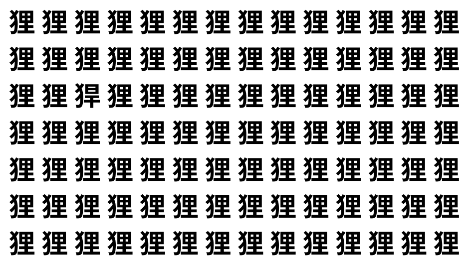たくさんの「狸」の中に、よく似た別の漢字が1文字だけ隠れています。