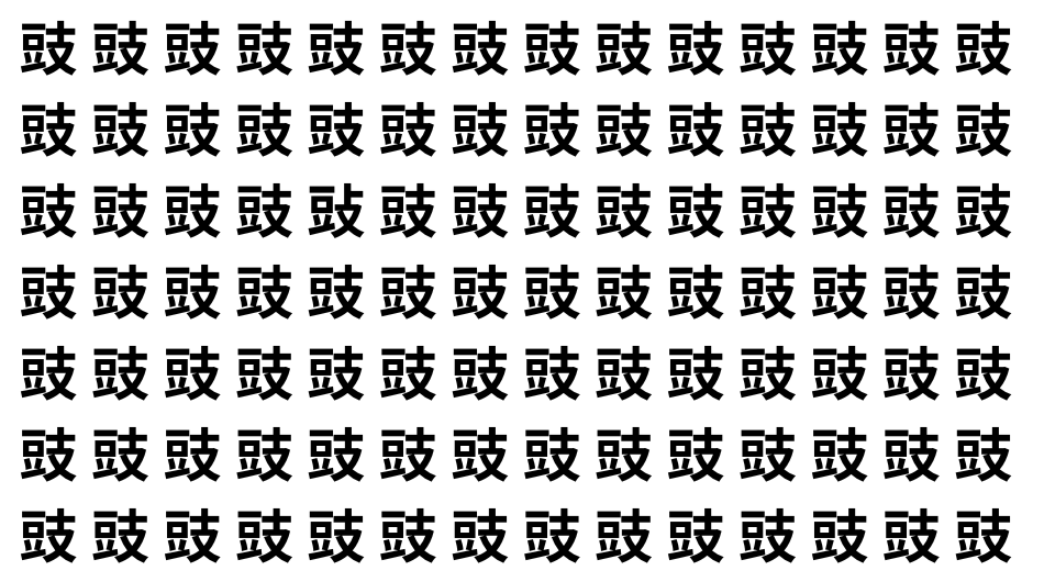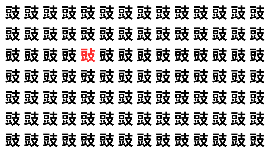 たくさんの「豉」の中に、よく似た別の漢字が1文字だけ隠れています。