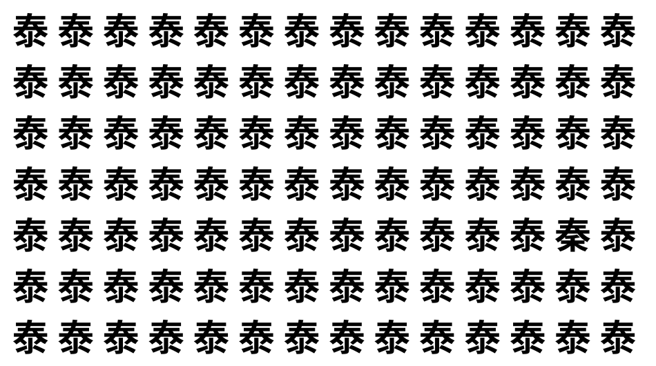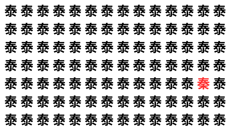 たくさんの「泰」の中に、よく似た別の漢字が1文字だけ隠れています。