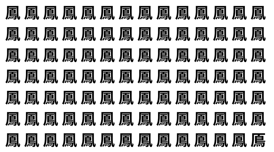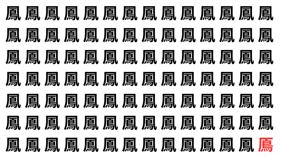 たくさんの「鳳」の中に、よく似た別の漢字が1文字だけ隠れています。