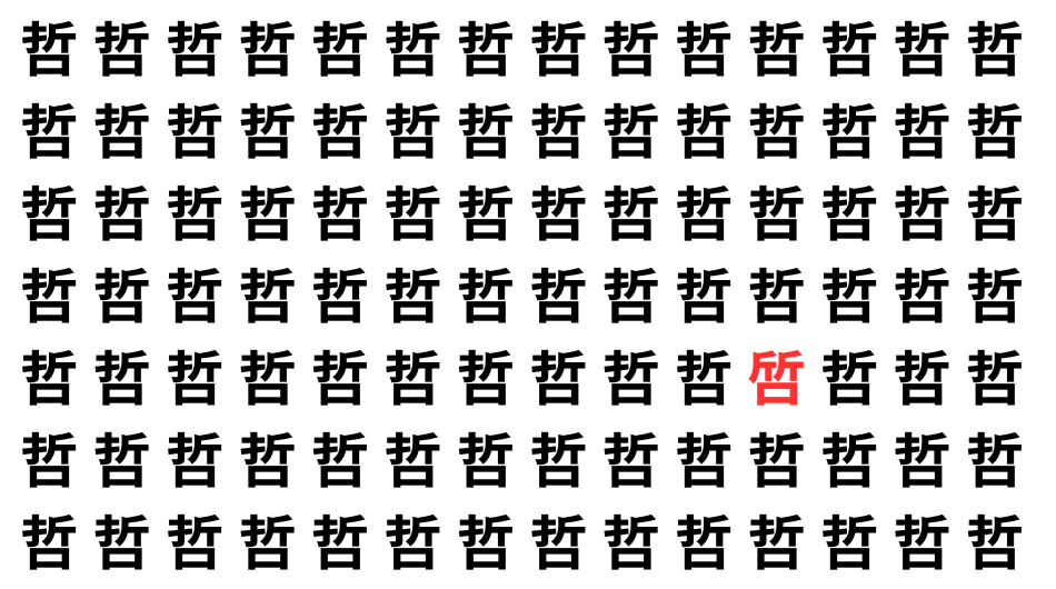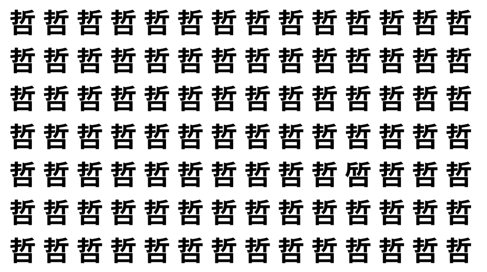 たくさんの「哲」の中に、よく似た別の漢字が1文字だけ隠れています。