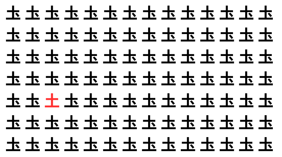 たくさんの「圡」の中に、よく似た別の漢字が1文字だけ隠れています。