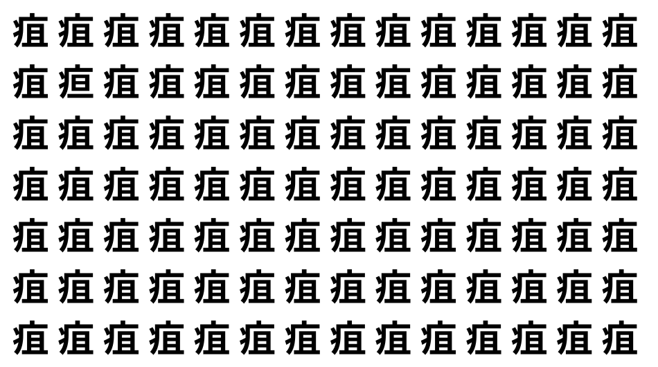 たくさんの「疽」の中に、よく似た別の漢字が1文字だけ隠れています。
