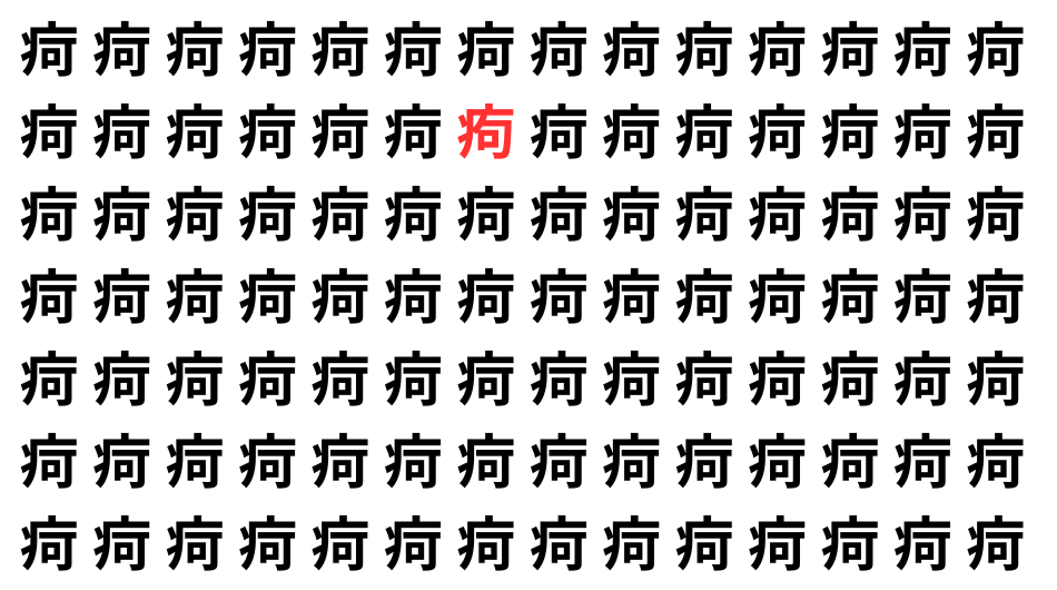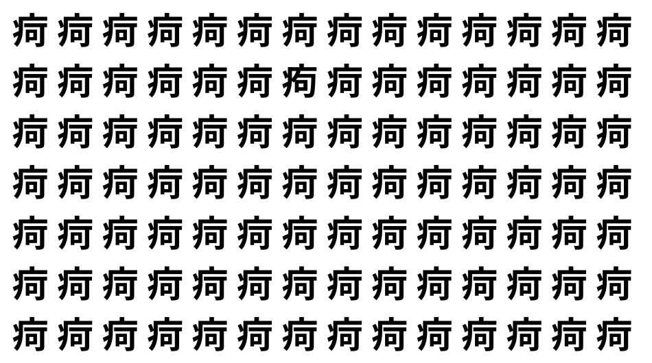 たくさんの「疴」の中に、よく似た別の漢字が1文字だけ隠れています。
