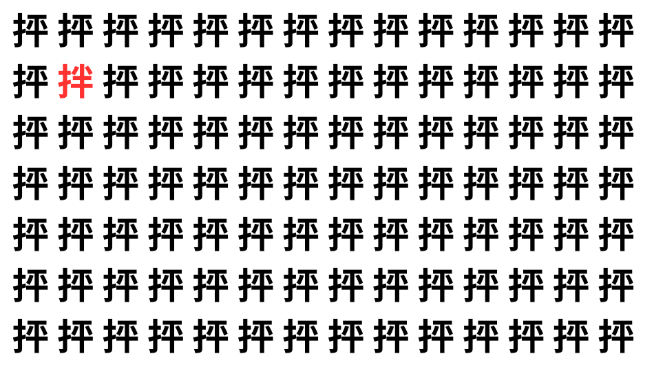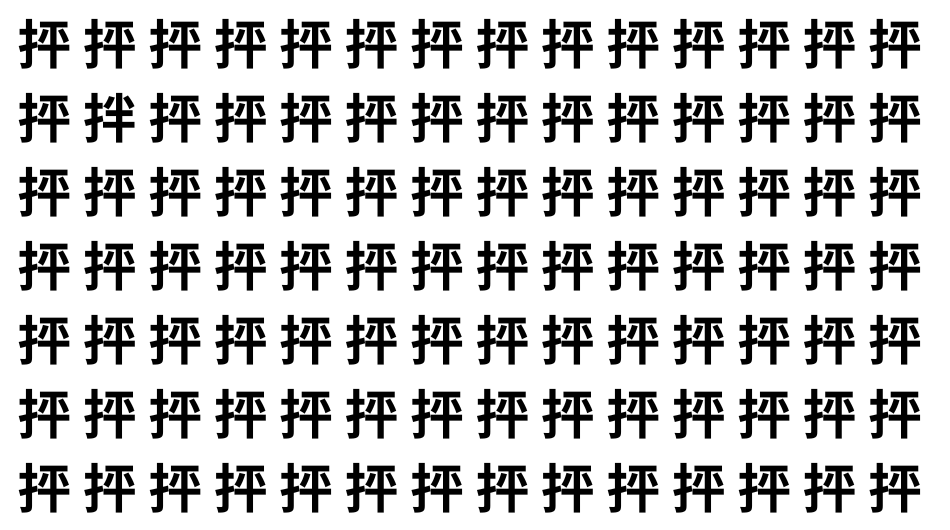 たくさんの「抨」の中に、よく似た別の漢字が1文字だけ隠れています。
