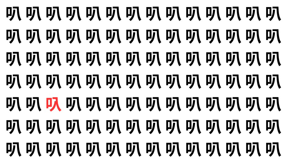 たくさんの「叭」の中に、よく似た別の漢字が1文字だけ隠れています。