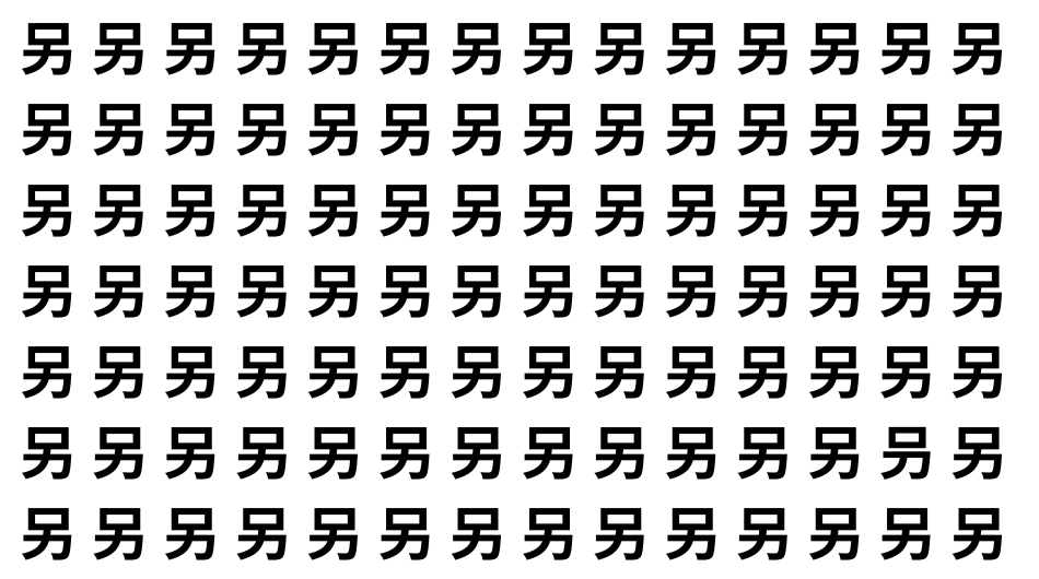 たくさんの「另」の中に、よく似た別の漢字が1文字だけ隠れています。